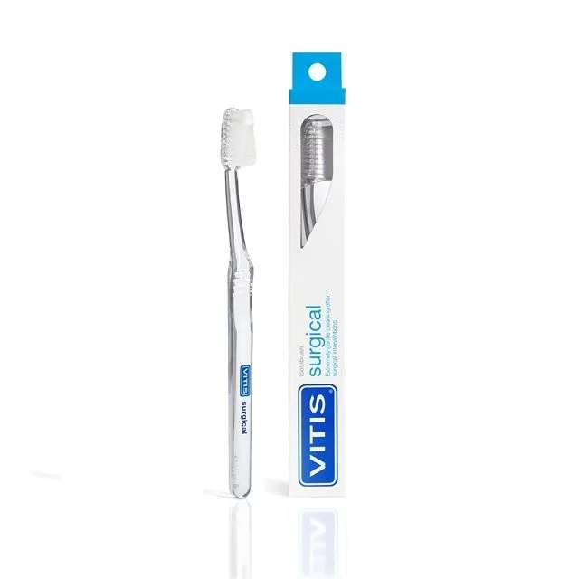 VITIS Surgical dantų šepetėlio šereliai yra itin minkšti, lygiai nukirpti, tai užtikrina ypatingai švelnų valymą po chirurginių operacijų. Pritaikytas naudoti postoperaciniu periodu, kurio laikas gali užsitęsti iki 15 dienų, arba iki kol odontologas nenurodo naudoti įprasto dantų šepetėlio.
